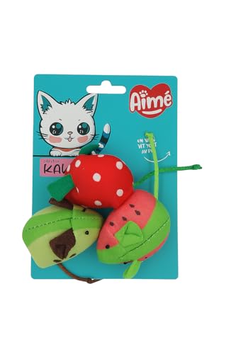 Aimé - Jouet pour Chat Kawaii Souris Fruits - Jeu Chat Appartement - Coloré, Craquant et Amusant - avec Rembourrage Catnip - Design Attrayant de Fraise, Kiwi et Pastèque - Lot de 3