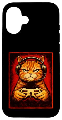 Chat Gamer Graphique Amusant Animal de Jeu Grincheux Chat Orange Coque pour iPhone 16