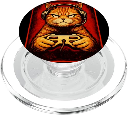 Chat Gamer Graphique Amusant Animal de Jeu Grincheux Chat Orange PopSockets PopGrip pour MagSafe