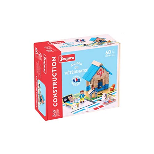 Jeujura - La Maison en Bois - 140 pièces - Jeu de Construction dans sa Valise en Carton - A partir de 5 Ans - Agilité - Créativité - Manipulation - Catalogue fourni – 8033