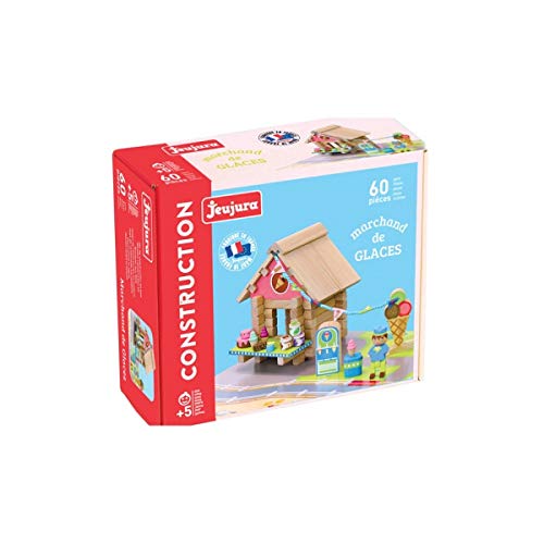 Le Marchand de Glaces - 60 pièces : Jeu de Construction en Bois Naturel et teinté - Un Tapis de Jeu et de Nombreux Accessoires - Jeu de Construction - Âge Minimum : 3 Ans