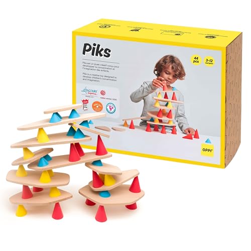 OPPI - PIKS - Medium Kit - Jeu éducatif en Bois et Silicone - Jeu d'éveil - Motricité - Jeu de Construction - 3-12 Ans - avec livret d'instructions - 44 Pièces, Divers