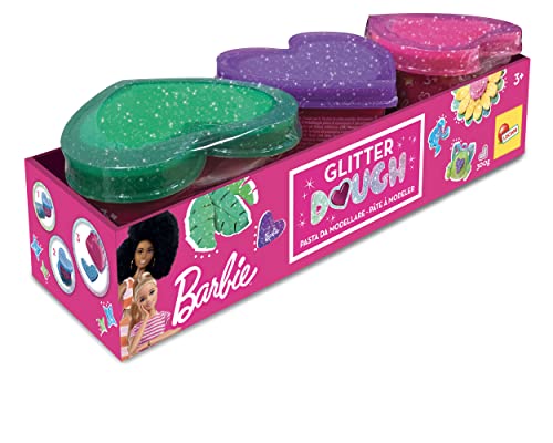 Lisciani, Barbie Glitter Dough Kit D’été, 3 Pots en forme de cœur, Pâte à modeler avec paillettes, Pack 3 x 100 g - Jeu créatif pour les filles à partir de 3 ans - 88836