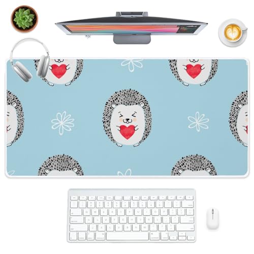 Grand tapis de souris de jeu hérisson amour grand tapis de souris de jeu antidérapant pour bureau et maison - Protection de bureau, clavier et accessoires d'ordinateur (80 x 30 cm)