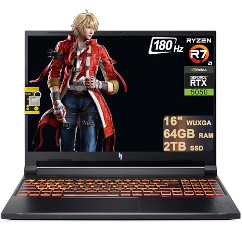 acer Nitro V 16 AI Ordinateur portable de jeu 16" WUXGA IPS 180 Hz AMD Zen 4 Octa-Core Ryzen 7 260 64 Go de RAM 4 To SSD GeForce RTX 5050 (jusqu'à 421 AI Tops) Rétroéclairé Win11 avec concentrateur