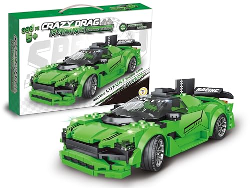 Teorema Giocattoli, Machine de Construction, 398 pièces, kit de Construction de Voiture de Course Verte, Jeu STEM pour Enfants 5 Ans avec Briques compatibles, idée Cadeau d'anniversaire