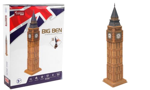 EXPLORA - Big Ben - Puzzles 3D - 540021-44 Pièces - Monument Historique - Niveau 4 - sans Colle Ni Ciseaux - Educatif - Londres - Jeu de Construction - Cadeau - Maquette - À Partir de 5 Ans