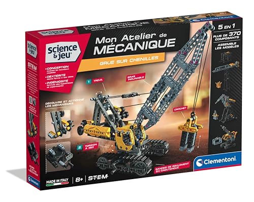 CLEMENTONI - Grue sur Chenilles à Construire pour Enfants dès 8 Ans - Jeu de Construction Engin de Chantier avec Pièces Mobiles à Assembler - Jouet Créatif - Idée Cadeau Ingénierie
