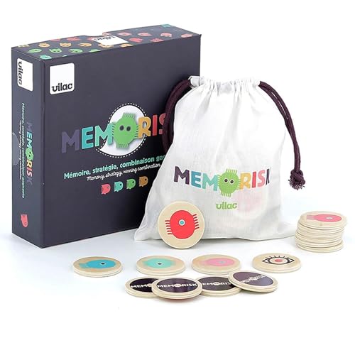 Vilac - Mémorisk - Souviens toi du Placement des pièces et réussit la Combinaison gagnante - Jeu de mémoire et de stratégie - Jouet en Bois, Durable - Intergénérationnel - A partir de 5 Ans
