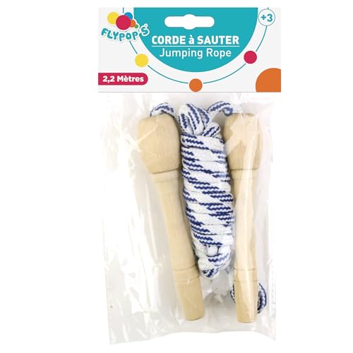 FLYPOP'S - Corde À Sauter - Jeu de Récréation - 011003Y - Couleur Aléatoire - Bois - Jeu d'Adresse - Jouet Enfant - Sport - 15 cm x 9 cm - À Partir de 3 Ans