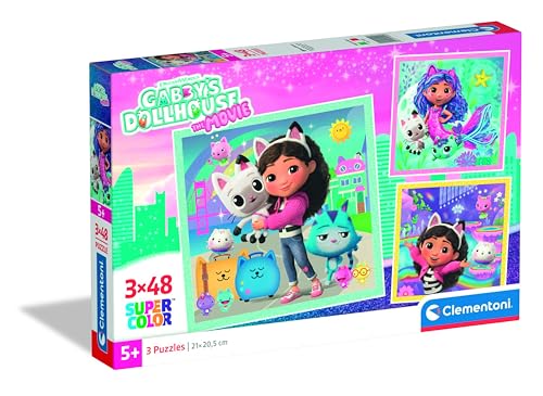 Clementoni – Puzzle Enfant Gabby’s Dollhouse 3x48 Pièces – 5 Ans et + – Jeu de société ludique – Idée Cadeau