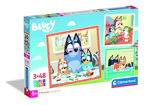 Clementoni – Puzzle Enfant Bluey 3x48 Pièces – 5 Ans et + – Jeu de société progressif – Idée Cadeau