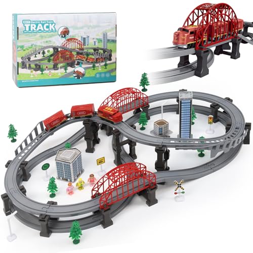 Wdmiya Train Electrique Enfant, Jeu de Voies de Niveau 3 avec 128 Aièces, Jouets de Train pour 3 4 5 6 7 8 Ans, Jeu de Circuit Voiture, Cadeau d'anniversaire pour Garçons et Filles