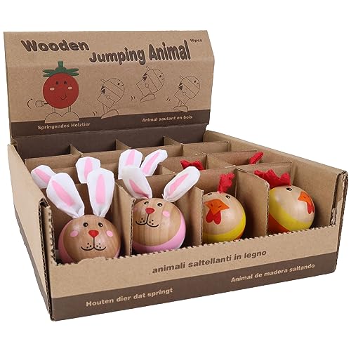PLANETE BOIS - Pack de 16 Animaux Sauteur - FSC - 030126PA - 16 pièces - Multicolore - Bois - FSC - Jeu pour Enfant - Récréation - Kermesse - Pâques - 7 cm x 4 cm - À Partir de 3 Ans