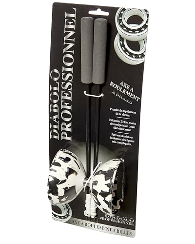 Megagic - Diabolo roulement à billes moucheté noir et blanc – jeu de jonglage enfant dès 7 ans, diabolo souple avec roulement à billes pour grande vitesse de rotation, activités de plein air