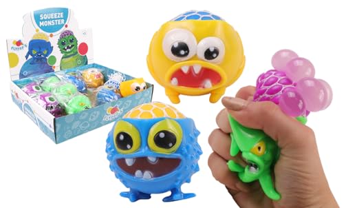 FLYPOP'S - Pack de 12 Monstres Anti-Stress - Jeu de Kermesse - 034270PA - Multicolore - Caoutchouc - Enfant - Adulte - Rééducation - Anxiété - 9 cm x 7 cm - À Partir de 3 Ans