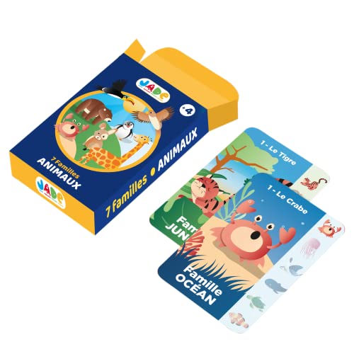 J.A.D.E - Jeu de 7 Familles sur Le Theme des Animaux - Jeu de Cartes - 142121-54 Cartes - Multicolore - Cartonné - Design Français - Puzzle Enfant - Jade - À Partir de 4 Ans