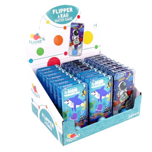 FLYPOP'S - Pack de 24 Flipper À Eau - Jeu d'Adresse - 031842PA - Modèle Aléatoire - Plastique - Enfant - Adulte - Jeu Vintage - Année 90 - Anniversaire - Labyrinthe - 14 cm x 7 cm - À Partir de 3 Ans