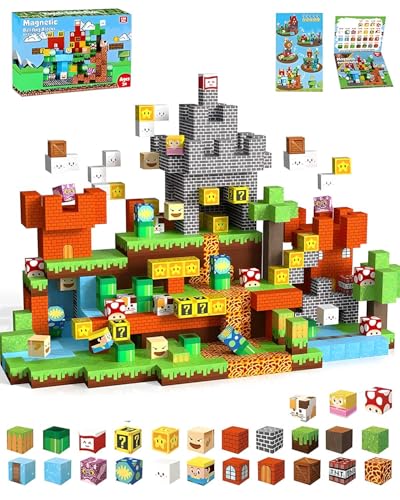 150 Pièces de Construction magnetique Enfant »Aventure Cubique« – Inspiré du Film Culte ! Blocs Aimantés avec Squelettes, Rails & Famille - Jeu Éducatif Voyage Enfants 4-7 Ans Jeu Enfant 4 5 6 7 8 an