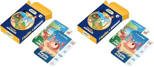 J.A.D.E - Jeu de 7 Familles sur Le Theme des Animaux - Jeu de Cartes - 142121-54 Cartes - Multicolore - Cartonné - Design Français - Puzzle Enfant - Jade - À Partir de 4 Ans (Lot de 2)