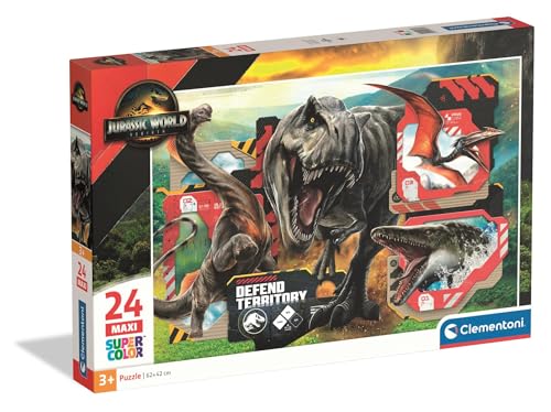 Clementoni – Puzzle Enfant Jurassic World Maxi 24 Pièces – 3 Ans et + – Jeu de société Dinosaures – Idée Cadeau