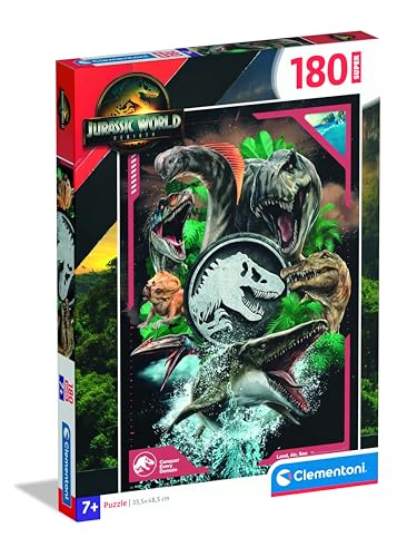 Clementoni – Puzzle Enfant Jurassic World Super 180 Pièces – 7 Ans et + – Jeu de société Dinosaures, Aventure, Patience – Idée Cadeau