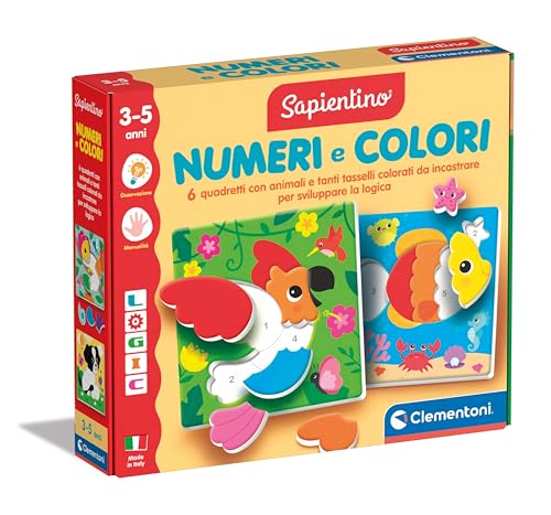 Clementoni - Sapientino Logic Colori-Flashcards, Cartes Illustrées à Encastrer avec Chiffres et Animaux, Puzzle Silhouette, Jeu Éducatif 4 Ans, Apprentissage, Made in Italy, 16871, Multicolore