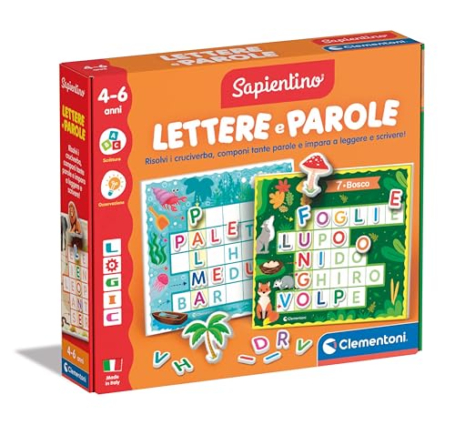 Clementoni - Sapientino Logic Cartes Illustrées avec Lettres, Mots croisés Enfants, Carte Flashcard, Jeu Éducatif 4 Ans pour Apprendre Alphabet et Nouveaux Mots, Made in Italy, 16872, Multicolore