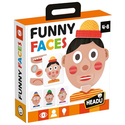 HEADU - Funny Faces - Créativité à Mourir de Rire| Jeu Éducatif 4-8 Ans, Jeu de Loto avec Expressions et Émotions, Mémoire Visuelle et Imagination, 1-4 Joueurs, Idée Cadeau Enfants, Fabriqué en Italie
