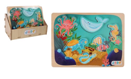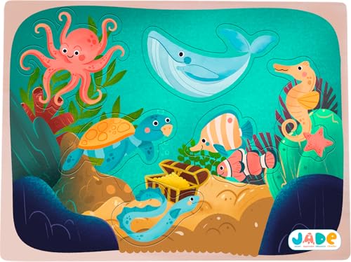 J.A.D.E - Puzzle Forme Animaux De La Mer - 1er Âge - Jeu Educatif - Première Réflexions - 052482-6 Pièces - Multicolore - Bois FSC - Design Français - Puzzle Enfant - Jade - À Partir de 18 Mois