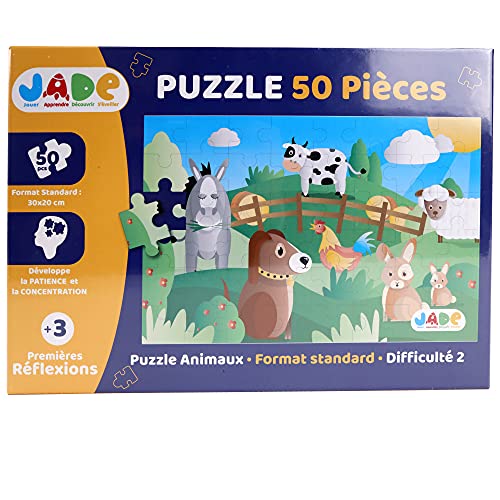 J.A.D.E - Puzzle Animaux De La Ferme - Jeu Educatif - Premiere Réfléxions - 053313-50 Pièces - Multicolore - Carton - Design Français - Puzzle Enfant - Jade - 30 cm x 20 cm - À Partir de 3 Ans