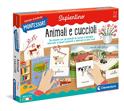 Clementoni - 16271 - Montessori - Les Animaux et Leurs Chiots - Made in Italy, Jeu Montessori 2 Ans, Jeu éducatif méthode montessorienne (Version en Français)