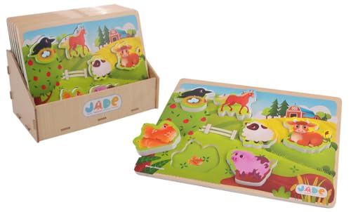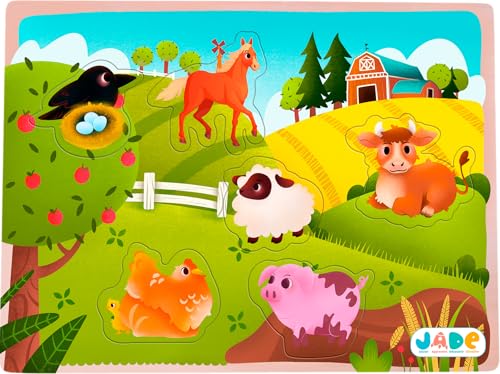 J.A.D.E - Puzzle Forme Animaux De La Ferme - 1er Âge - Jeu Educatif - Première Réflexions - 052481-6 Pièces - Multicolore - Bois FSC - Design Français - Puzzle Enfant - Jade - À Partir de 18 Mois
