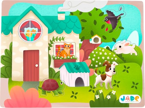 J.A.D.E - Puzzles Forme Animaux Domestiques - 1er Âge - Jeu Educatif - Première Réflexions - 052480-6 Pièces - Multicolore - Bois FSC - Design Français - Jade - À Partir de 18 Mois