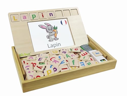 Lexibook, Bio Toys, École des Mots, bilingue Français/Anglais, Jeux en Bois, 50 Cartes, Alphabet, Jeu éducatif, EDU100i1