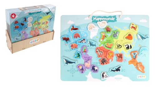 J.A.D.E - Tableau avec des Animaux Magnétiques - Jeu Educatif - Première Réflexions - 033525-30 pièces - Bleu - Bois FSC - Jeu -Montessori - Mappemonde - Design Français - À Partir de 3 Ans