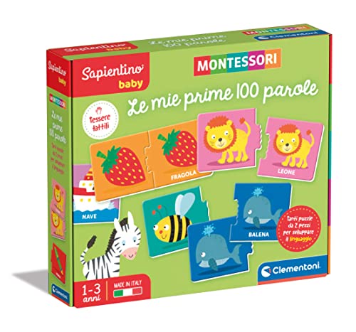 Clementoni - Sapientino Baby Prime 100 Mots-Jeu éducatif 1 an, Flashcards, (Version en Français), Jeux Montessori, Made in Italy, Multicolore, 16412