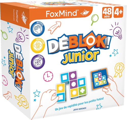 Asmodee – Déblok Junior – Jeu Éducatif de Logique et Rapidité pour Enfants dès 4 Ans – 60 Cartes Défis + Blocs Colorés – Jeu de Société Pédagogique – 1 à 4 Joueurs – 20 Min – en Français – Foxmind