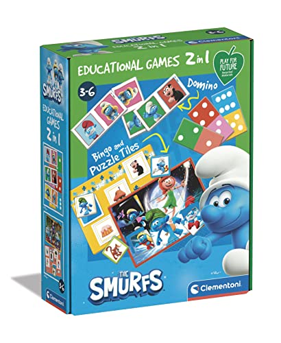 Clementoni Educational Games-2 1 The Smurfs-Jeu Éducatif 3 Ans (Italien, Anglais, Français, Allemand, Espagnol, Néerlandais Et Polonais), Made in Italy, 18285, Multicolor Exclusivité Amazon