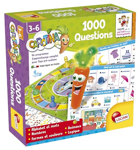 Lisciani - CAROTINA - Jeu 1000 Questions pour Enfants 3 à 6 ans - Jeu Educatif Electronique avec Stylo Carotina Parlant - Apprentissage Alphabet , Nombres, Formes, Couleurs, Animaux & Logique