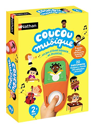Nathan - Coucou La Musique - Jeu d'Eveil Sonore et Musical - 20 Instruments de Musique du Monde et 20 mélodies à Ecouter - Jeu Educatif Electronique - Pour Enfants à partir de 2 ans