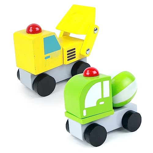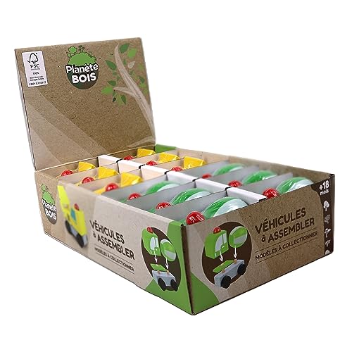 PLANÈTE BOIS - Pack de 12 Véhicules De Chantier À Construire - FSC - 053361PA - 12 pièces - Multicolore - Bois - Jeu pour Enfant - Récréation - Kermesse - 8 cm x 5 cm - À Partir de 18 Mois