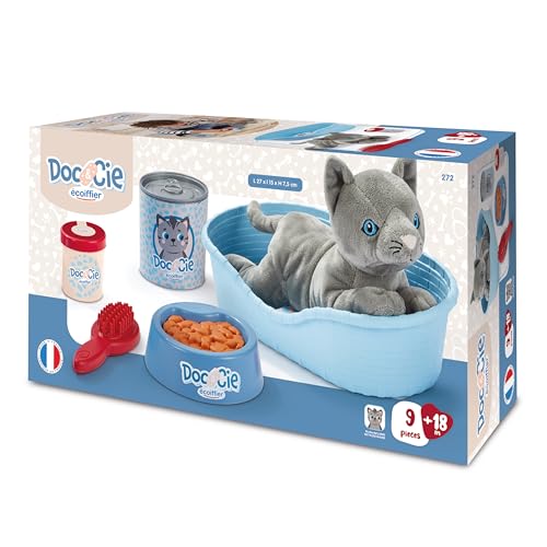 Ecoiffier - Corbeille Enfant Chat avec Peluche - Accessoires de Soin Inclus 9 Pièces - Jeu d'imitation - Dès 18 Mois - Jouet pour Enfant - 272 - Garantie France Origine
