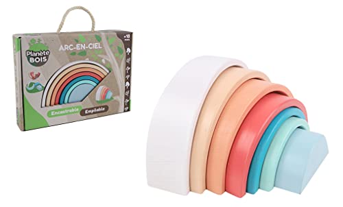 PLANETE Bois - Arc en Ciel À Empiler - FSC - 030193-7 Pièces - Multicolore - Bois - Jeu pour Enfant - Durable - Empilable - Encastrable - Montessori - 17,5 cm x 8 cm - À Partir de 18 Mois