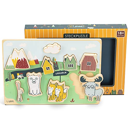 HEJ LØNNE Puzzle en Bois avec 9 Grandes Pièces, Jeu d'éveil - Favorise la Motricité et la Coordination - Jeu Educatif 18 Mois - Cadeau de Noel Enfant