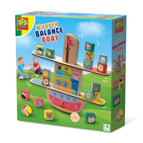 SES Creative 02309 - Bateau d'équilibre en Bois, Jeu d'adresse Amusant pour Tous Les âges