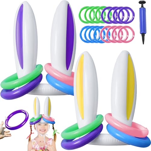 XIEXIESHER Jeu de Lancer d'Anneaux Gonflable pour Oreilles de Lapin, avec Anneaux et 1 Pompe,Jeu Exterieur Enfant Adulte,Amusant Jeux Gonflable Piscine pour Jardin Fête Pâques Party