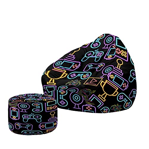 Treer Housse de Pouf Poire Pouf Adulte et Enfants Sac de Haricots + Housses de Repose-Pieds (sans Remplissage) pour Intérieur et Extérieur (70x80+20x30cm,Manette de Jeu 5)
