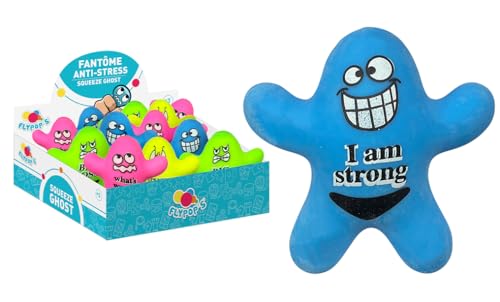 FLYPOP'S - Pack de 12 Fantômes Anti-Stress - Jeu de Kermesse - 037213GPA - Multicolore - Mousse - Enfant - Adulte - Rééducation - Anxiété - 12 cm x 6,5 cm - À Partir de 3 Ans