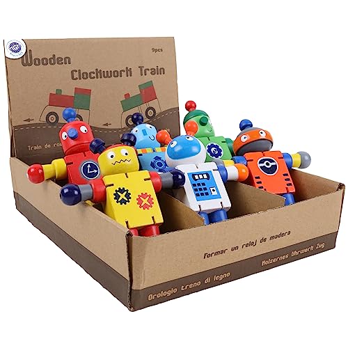 PLANETE BOIS - Pack de 12 Robots Articulés - FSC - 030169PA - 12 pièces - Multicolore - Bois - Jeu pour Enfant - Récréation - Kermesse - À Collectionner - 9 cm x 5 cm - À Partir de 3 Ans